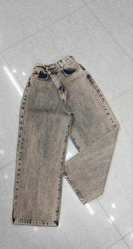 شلوار جین زنانه مدل واید پایین ریش گازوییلی
