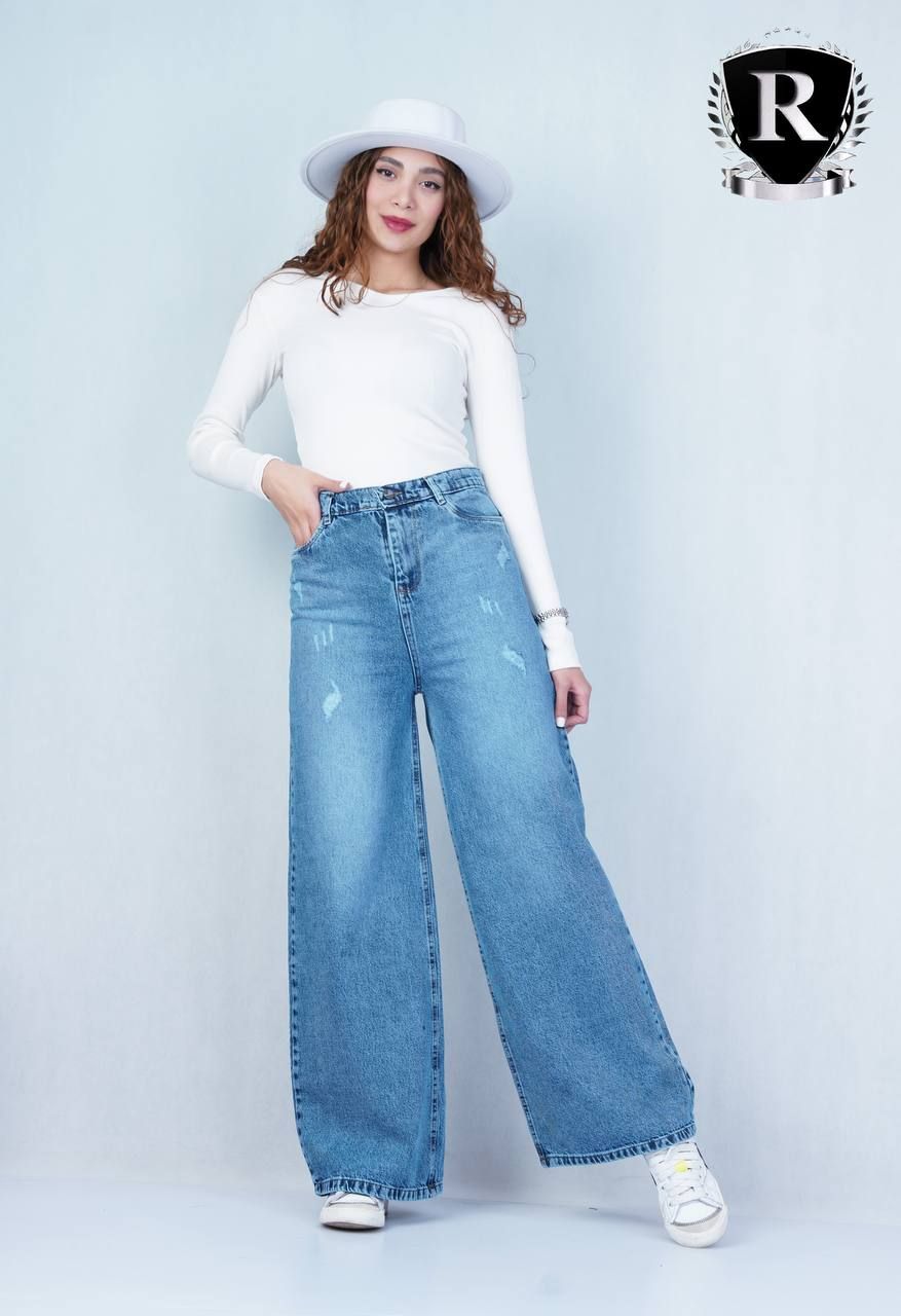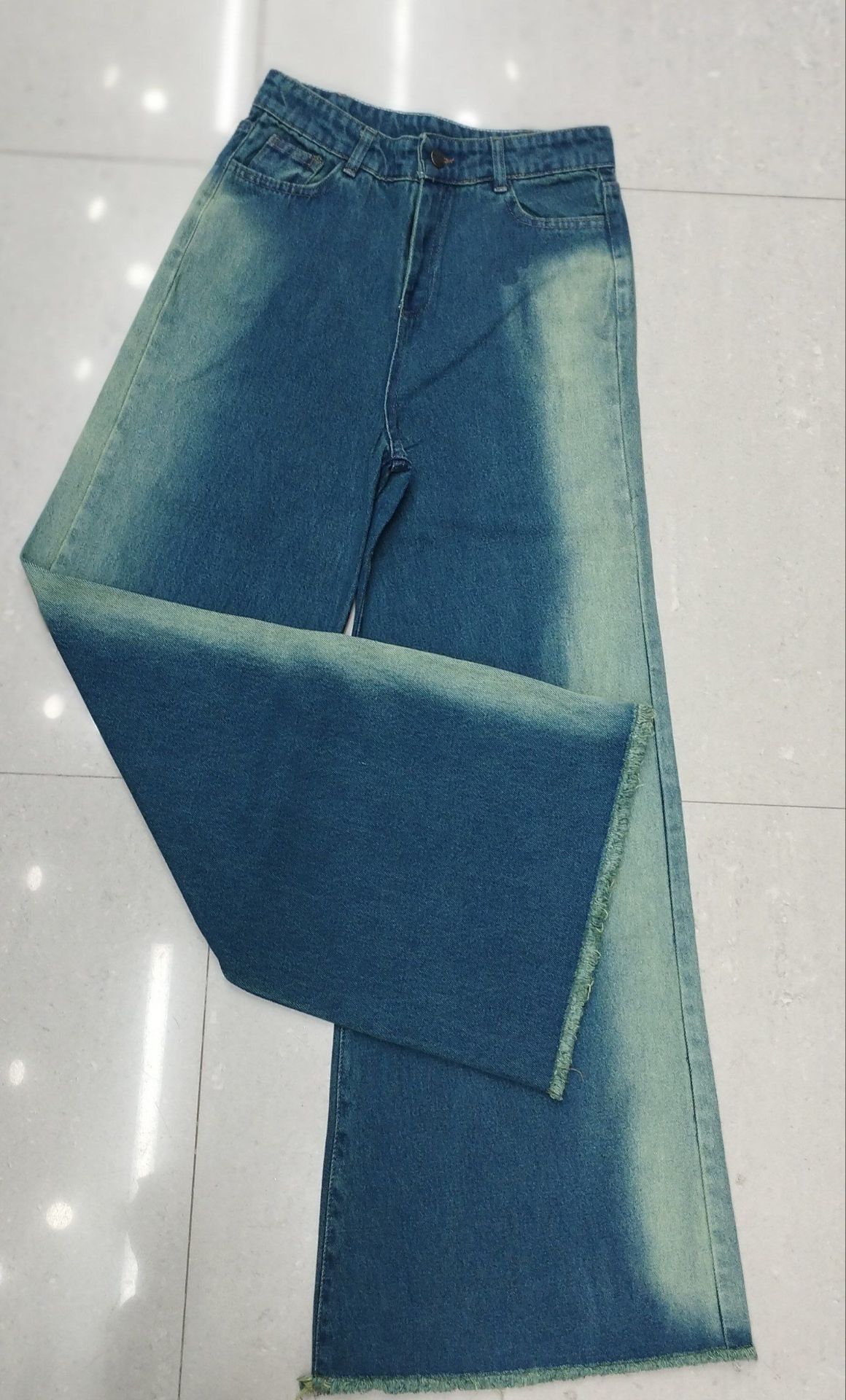 شلوار جین زنانه مدل واید پایین ریش گازوییلی