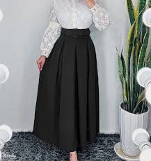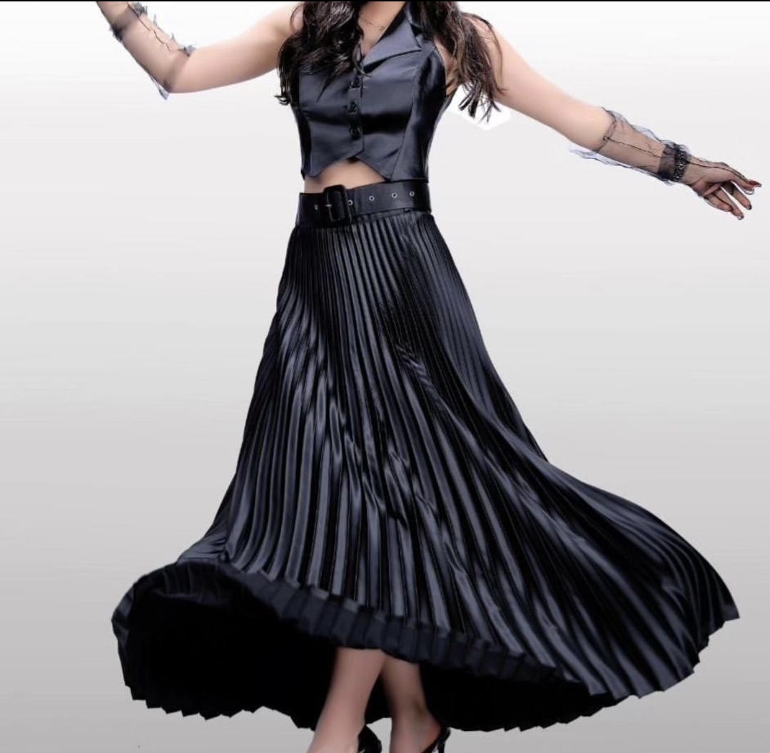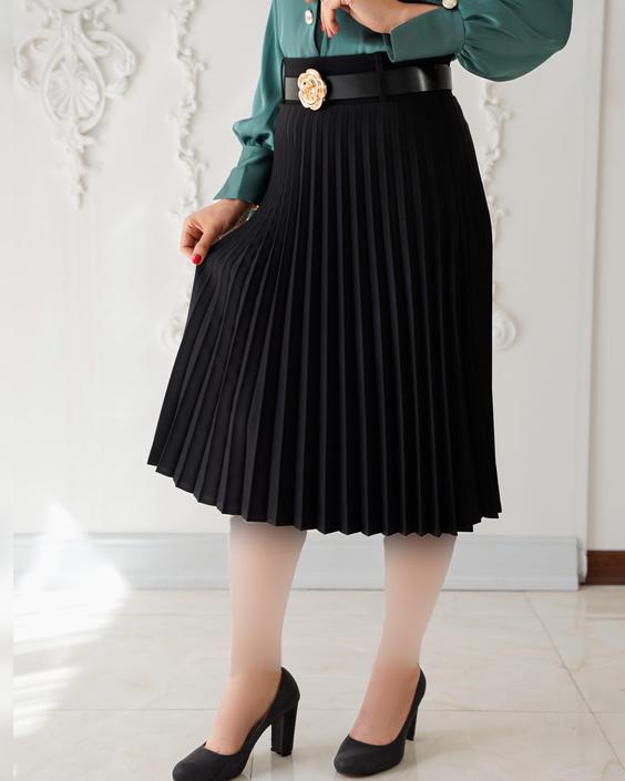 دامن پلیسه قد 100 کمربند دار جنس مازراتی ترک گرم بالا