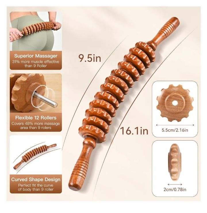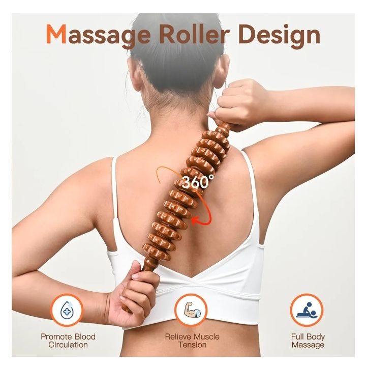 مناسب برای ماساژ در خانه: چوب ماساژ غلتکی آجدار یک ابزار چوبی ماساژ خانگی قابلحمل و مقرونبهصرفه است.