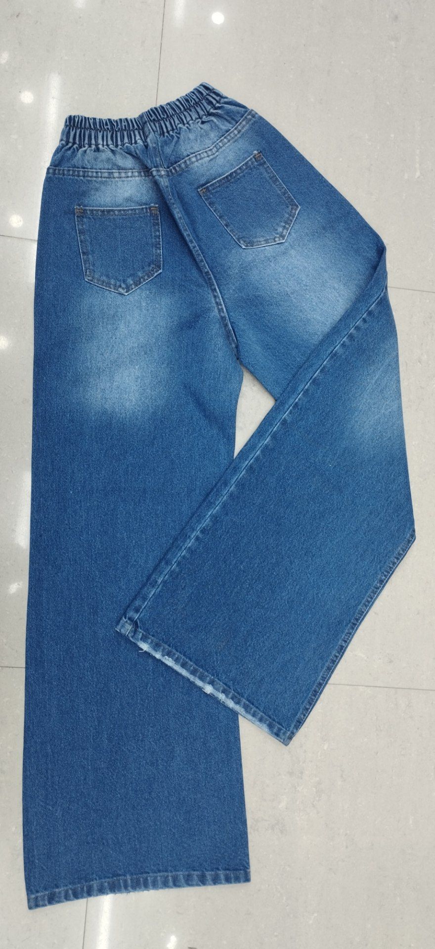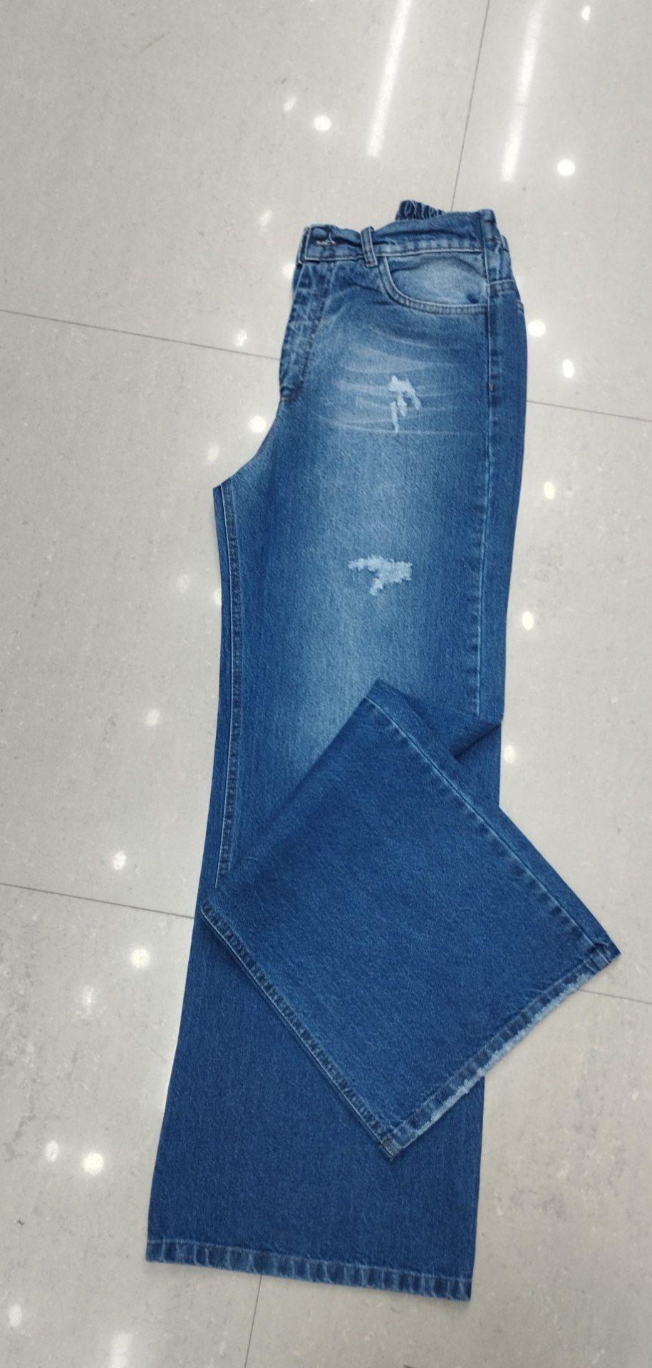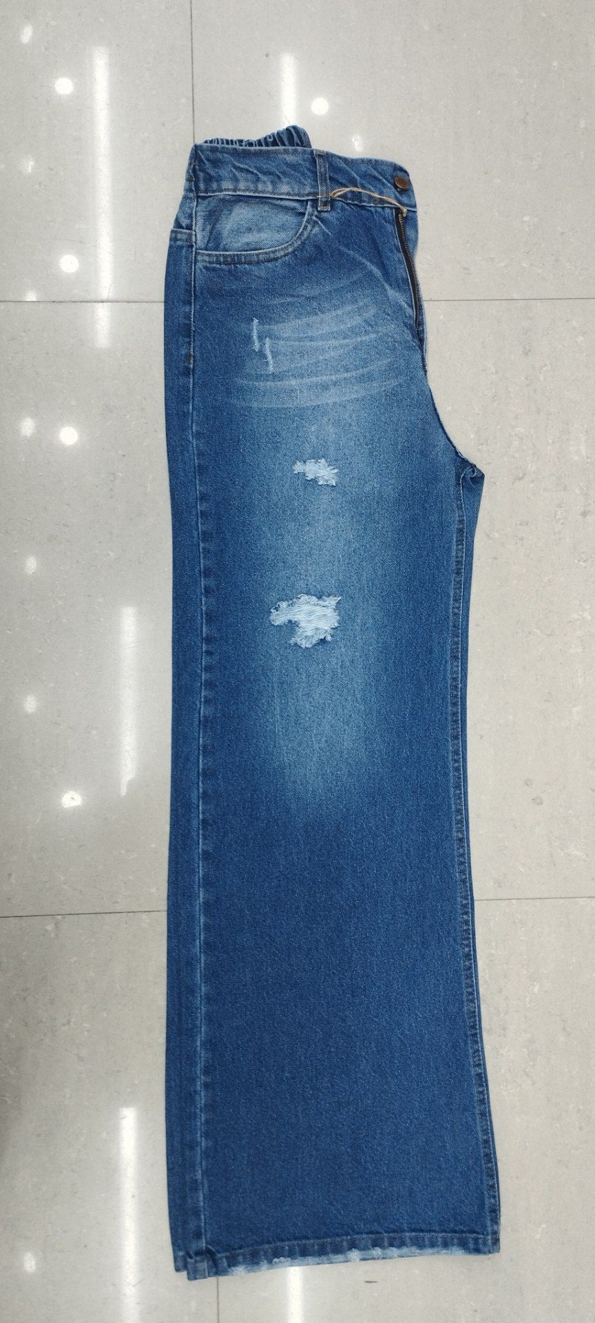 شلوار جین زنانه مدل بگ آبی کمی زاپ دارد