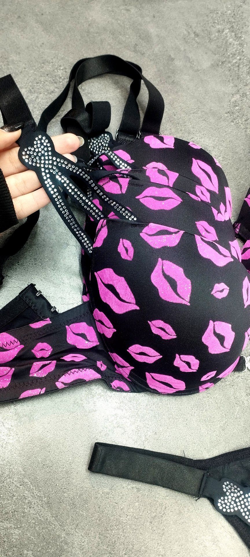 ست شورت و سوتین طرح لب بنفش